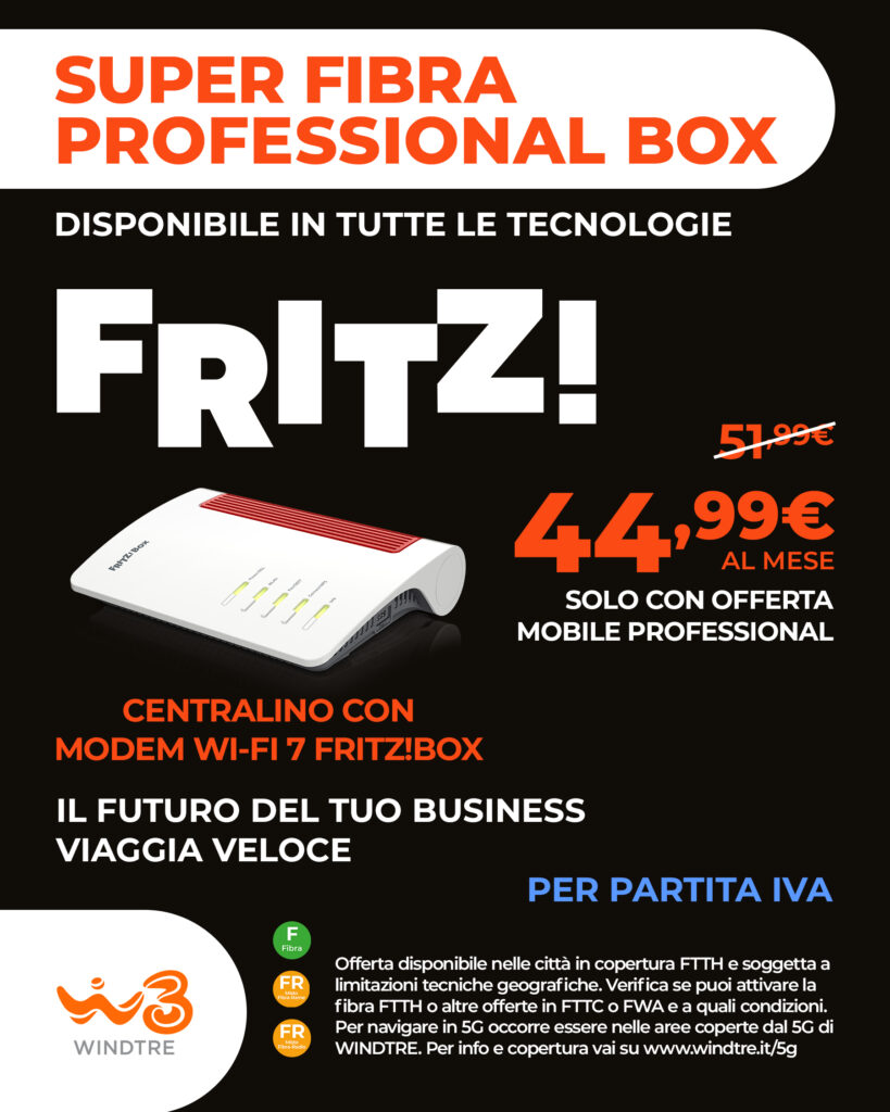 Super Fibra Professional Box e modem Wi-Fi 7 FRITZ!Box. Connettività evoluta disponibile in tutte le tecnologie