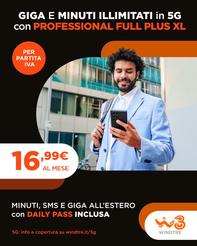 Scegli Professional Full Plus XL con GIGA ILLIMITATI in 5G, Minuti Illimitati in Italia e UE e 500 minuti vs Estero!