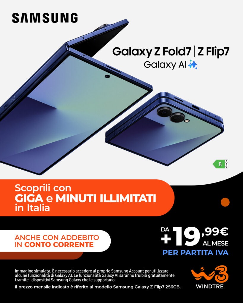 Samsung Galaxy Z Fold7| Z Flip7! A partire da+19,99€ con GIGA e MINUTI ILLIMITATI in Italia con le offerte professional!